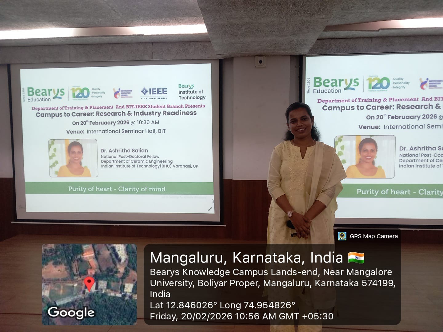 The Department of Training & Placement in association with the BIT-IEEE Student Branch organized an insightful session titled “Campus to Career: Research & Industry Readiness” on 20th February 2026 at 10:30 AM in the International Seminar Hall, Bearys Institute of Technology (BIT).
