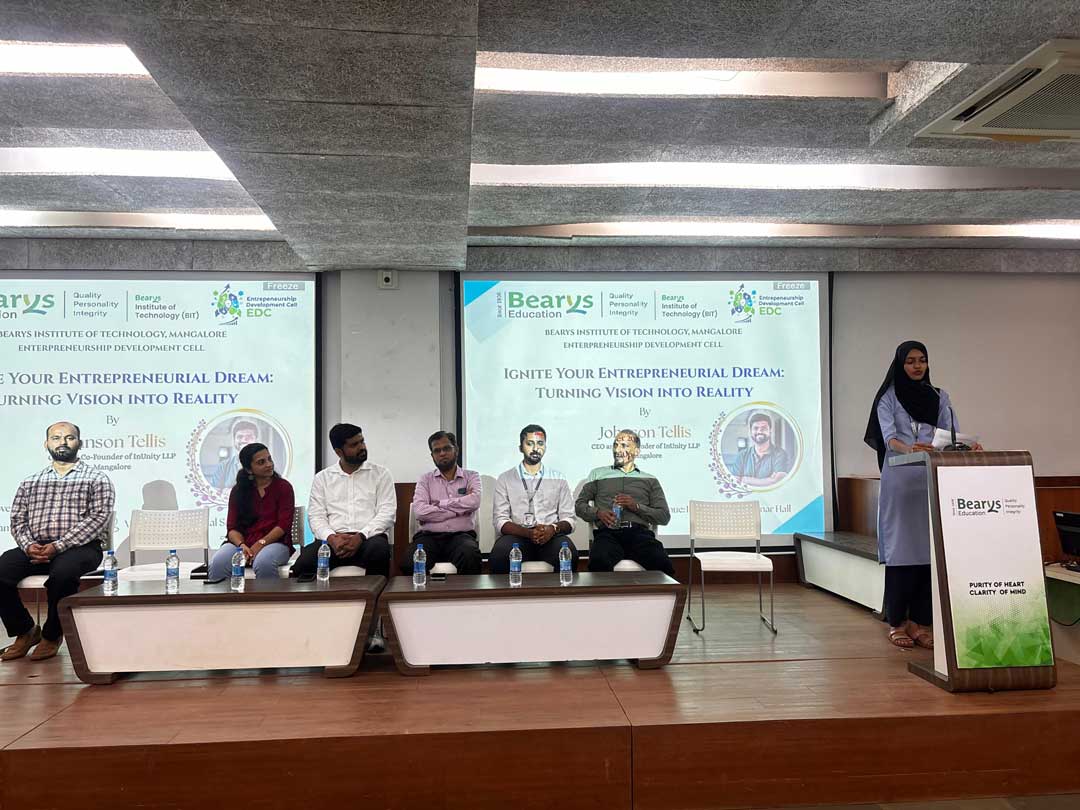 Entrepreneurship Session Ignites Passion at Bearys Institute of Technology On November 20, 2025, the Entrepreneurship Development Cell (EDC) at Bearys Institute of Technology (BIT), Mangalore, hosted an inspiring session titled “Ignite your Entrepreneurial Dream: Turning Vision into Reality”.