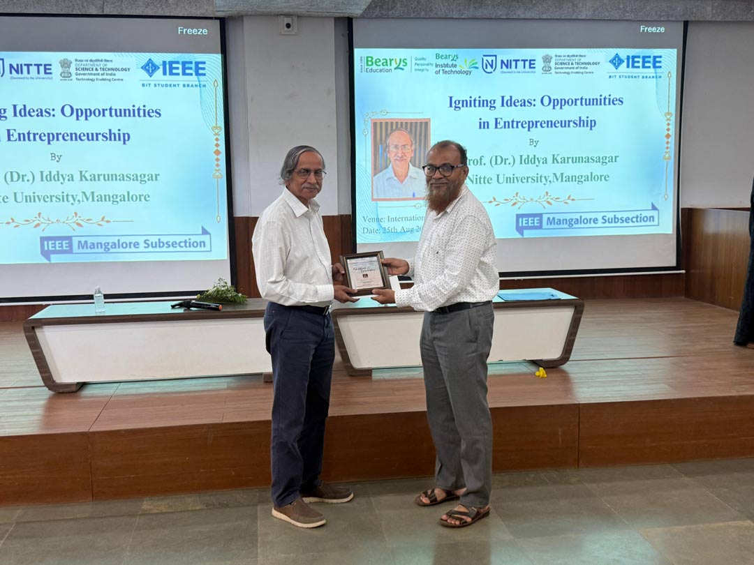 Bearys Institute of Technology (BIT), in association with IEEE BIT Student Branch and IEEE Mangalore Subsection, organized an inspiring invited talk on “Igniting Ideas: Opportunities in Entrepreneurship” on 25th August 2025 at the International Seminar Hall.