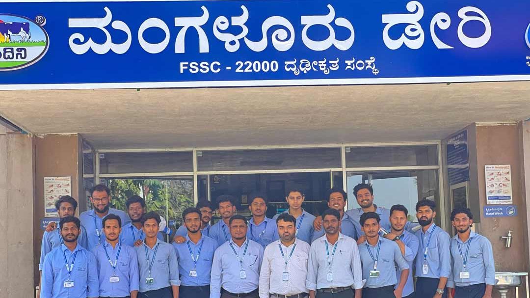 The visit aimed to bridge the gap between academic learning and industry practices by providing insights into milk processing, automation, quality control, supply chain management, and the cooperative model of KMF. Students observed key dairy processing techniques such as pasteurization, homogenization, and packaging, along with modern automation and hygiene standards essential for maintaining product quality.