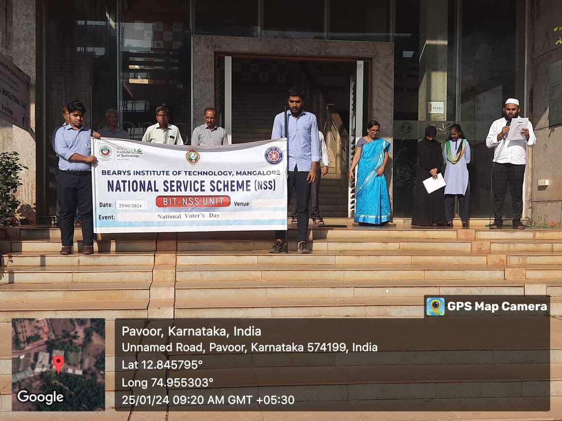 To commemorate the founding day of the Election Commission of India, Bearys Institute of Technology Mangalore, in association with BIT Electoral Literacy Club and BIT NSS unit celebrated National Voters Day on 25 January 2024 “Nothing Like Voting, I Vote for Sure” of the National Voters Day 2024 Theme. The election commission’s main objective is to encourage more people to vote in elections, regardless of their age, gender, ethnicity, or other characteristics.