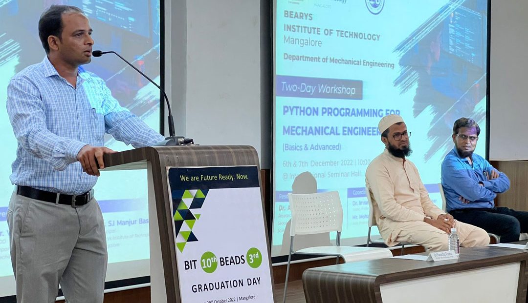 The program was welcomed by Dr. Vasantha Kumar, HOD, Department of Mechanical Engineering, BIT Mangalore. Principal Dr. S.I Manjur Basha gave the inaugural speech, in which he briefed about the new concepts of Python requirements to Mechanical Engineers and advised students to take benefit with two day workshop knowledge. Also he congratulated the Mechanical Engineering department for organising such a good event.